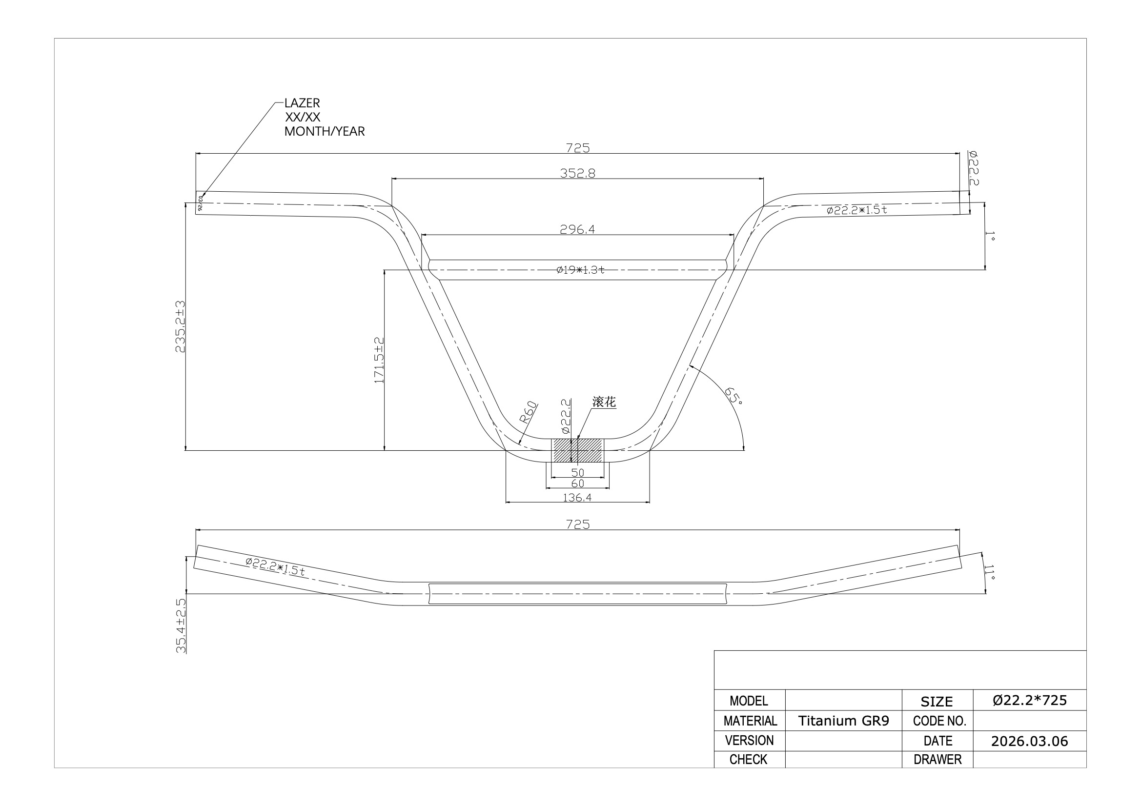 - Finish: Laser Etched Graphics